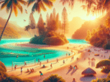 | Beschreibung | Weißer Sandstrand mit kristallklarem Wasser, umgeben von tropischer Vegetation |